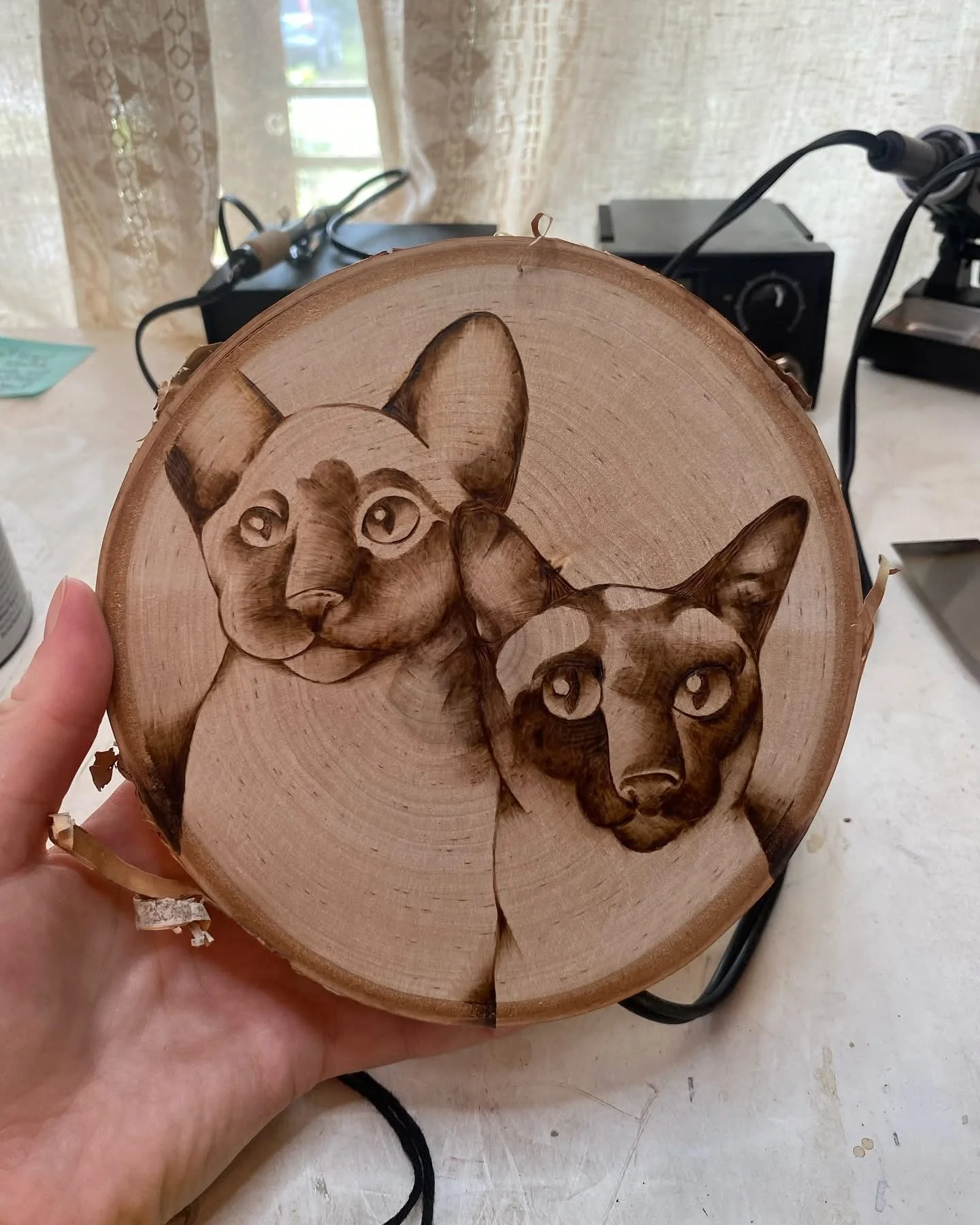 As a pet owner myself, I fully understand the unconditional love a pet parent has. My goal is to fully represent your pet in a woodburning. I don’t want to just replicate a photo, I want to recreate the feeling you have when you see them.